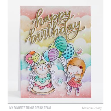 If you love details - all those little particulars that make an image special, then you will adore bringing this Beautiful Birthday Girl to life. From the balloon bundle that boasts three different designs to her striped skirt and tights that reveal some natural pattern-mixing prowess, there are endless opportunities for celebrating a birthday girl in your life with a custom cutie colored with her in mind. My Favorite Things clear stamps are made in the USA and include the name of the set on the sticker for easy identification. 4x4 inch clear stamp 5 piece set. Sentiments: Of All the Things That Happened on This Day, You’re the Best, To the Beautiful Birthday Girl, Sending Sweet Birthday Wishes. Birthday girl 2x3 5/8 inch; Bird 3/8x3/8 inch.