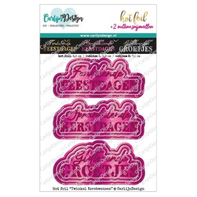 3 mooie hot foil plates met Nederlandse kerstteksten, elk met 2 outlines. Zo maak je prachtige kerstkaarten!