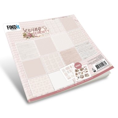 Boekje met 18 vellen dubbelzijdig designpapier in 12 designs, passend bij de collectie Sewing Serenity van Amy Design. Formaat per pagina 20,3 x 20,3 cm.