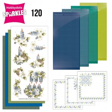 Deze set met Hobbydots-Sparkles bevat alle materialen voor 3 vierkante kaarten. De inhoud bestaat uit vier Sparkles stickervellen, drie 3D-afbeeldingen, drie witte oplegkaarten met bijpassende patronen en drie vellen kaartkarton. Het patroon is in kleur voorgedrukt op de oplegkaarten, waardoor je de stickers, zonder een Led Board te gebruiken, direct hierop kunt plakken.