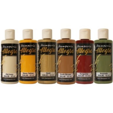 Set acrylverf van Allegro, 6x60ml: Old ivory, warm yellow, gold, earth brown, burgundy, avocado.